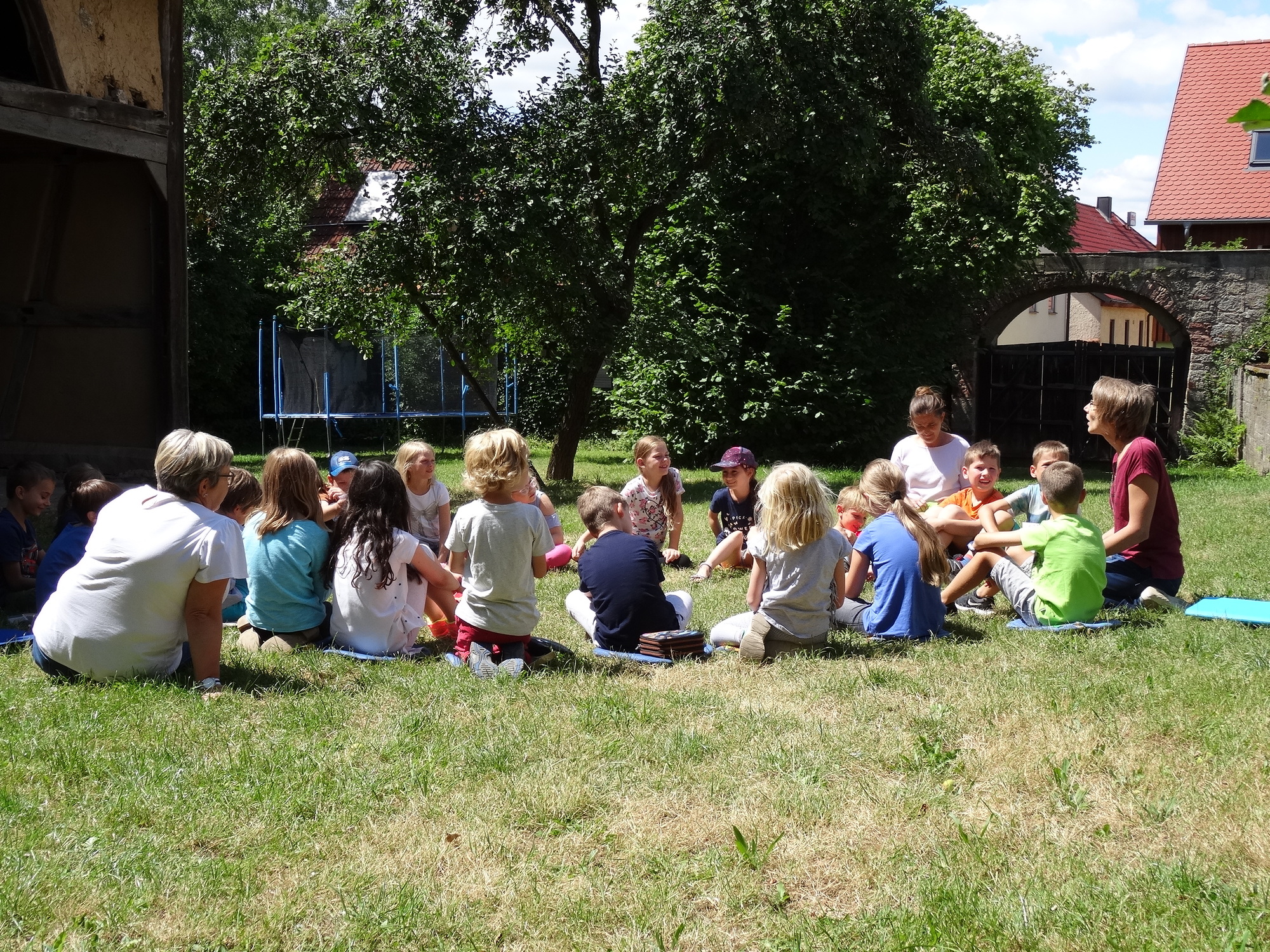 Zum Abschluss des Leseförderprogramms “Lese-Kompass” begaben sich die Schüler der 2. Ganztagesklasse mit ihrer Klassenleiterin Frau Nerreter am 10. Juli 2018 in die Bücherei Langendorf. Zu Beginn lud Frau Carolin Karner die Kinder in den Pfarrgarten ein, um ihnen dort die lustige Geschichte “Die Olchis allein zu Haus” von Erhard Dietl vorzulesen. Außerdem bereitete Frau Karner eine Leserallye vor, die ebenfalls im Garten stattfand und den Kindern viel Spaß machte. Seit der 1. Klasse besuchten die Kinder die Bücherei Langendorf in regelmäßigen Abständen, um an den vorbereiteten Klassenführungen teilzunehmen. Nun sind alle Kinder “bib-fit”, denn sie sind ab sofort in der Lage, sich selbständig Medien auszusuchen. Nachdem die Schüler und Schülerinnen ihre Reimkünste noch unter Beweis stellten, durften sie zum Schluss ein Ausmalbild gestalten. Kleine Geschenke gab es auch zum Abschluss dieser Veranstaltung, nämlich etwas Süßes und für jedes Kind einen Kompass. Mit dessen Hilfe werden sie in Zukunft sicherlich alleine den Weg in die Bücherei Langendorf finden.